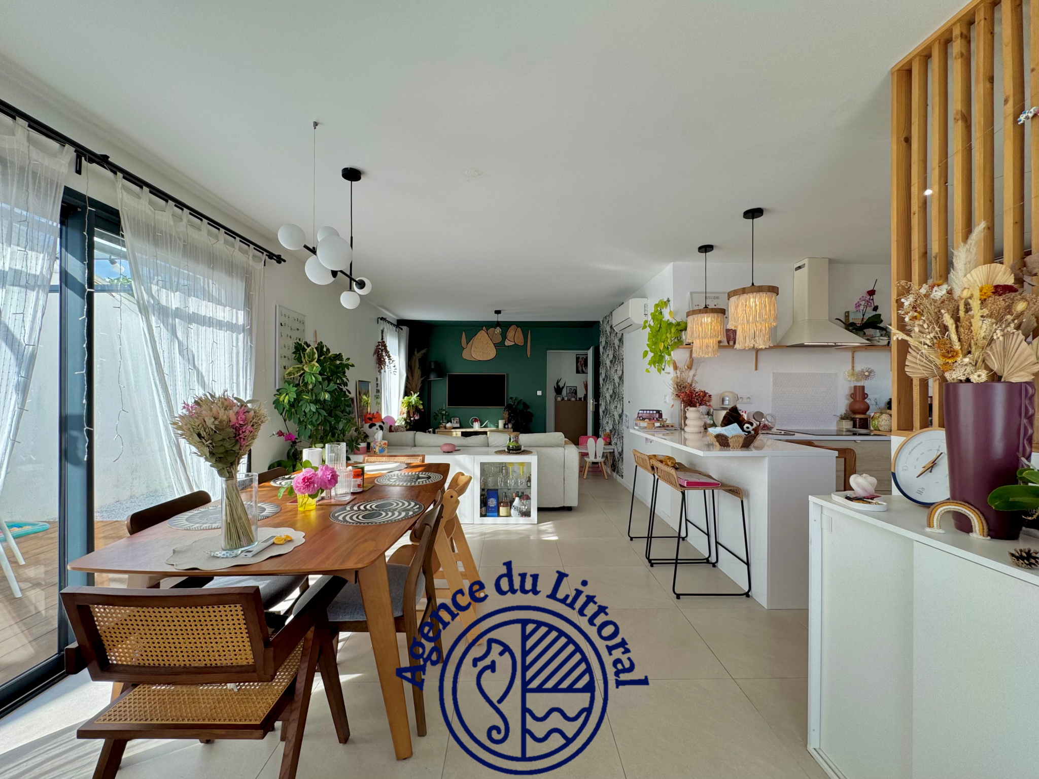 Située en plein cœur de Semussac, dans le centre-bourg et à proximité immédiate des commerces, l’Agence du Littoral vous propose cette maison récente de plain-pied, construite en 2022, d’une surface habitable de 77 m². Elle offre une belle pièce de vie lumineuse avec cuisine ouverte, aménagée et équipée, donnant directement sur une agréable terrasse en bois de 41 m². L’espace nuit se compose de deux chambres, dont une avec dressing, ainsi qu’une salle de bains équipée d’une baignoire et d’une douche, et un wc indépendant. Un garage attenant complète ce bien. Le tout est édifié sur une parcelle de 529 m², avec un stationnement privatif permettant d’accueillir deux véhicules. Maison conforme aux normes RT 2021, bénéficiant des garanties décennales et dommage-ouvrage. Plus de détails sur le site de l'Agence du Littoral www.agencedulittoral-immobilier.fr. Les informations sur les risques auxquels ce bien est exposé sont disponibles sur le site Géorisques : www.georisques.gouv.fr.